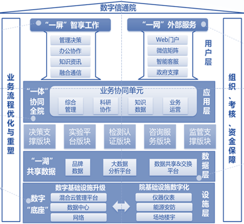 “一体”协同全院指建立全院的综合办公管理和业务运营支撑,总院、分院、院属公司基于统一的“业务协同单位”的一体化运营,各分支机构、下属单位聚焦于业务创新发展,避免“重复造轮子”。