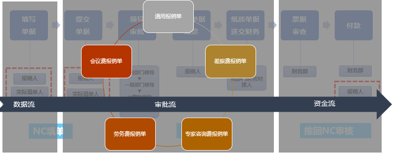 协同办公平台的费用管理,亮点是实现了费用报销和财务系统的无缝集成,在协同办公平台填写报表单据,线上领导审批完成之后,推送至NC系统,实现财务和预算的管控。通过协同与NC系统对接,实现了各类费用的全过程管理,完成了数据流、审批流、资金流的全闭环管理。
