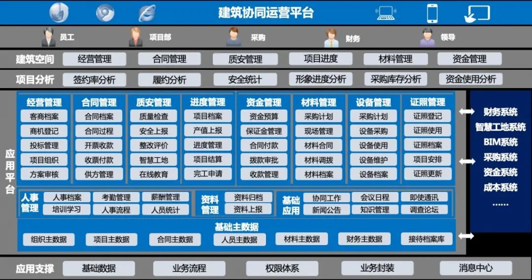 行业调研发现,建筑企业在信息化建设方面存在多项目信息反馈滞后,项目进度要求高难以保障;各部门协作不畅,计划失败;工程质量控制难度大,成本管理复杂;合同执行难,前后环节的计划衔接难度较大等问题。