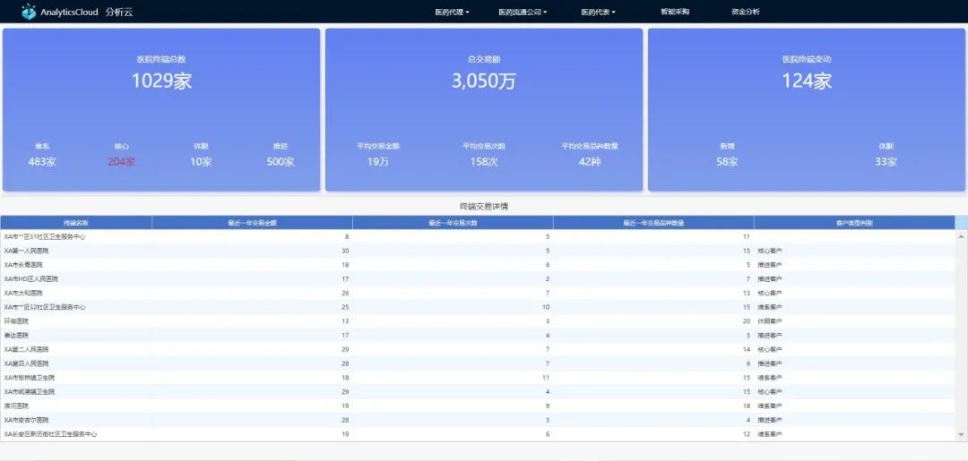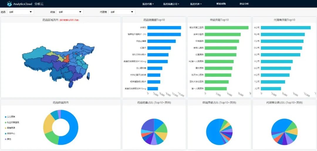 分析云为医药流通行业提供一站式大数据分析解决方案,利用数据实现市场份额和营运效率有效提升,助力医药流通企业扩大覆盖面、提升配送能力,进一步满足上游供应商和终端客户对渠道的需求,为医药流通企业打造智慧供应链服务体系。