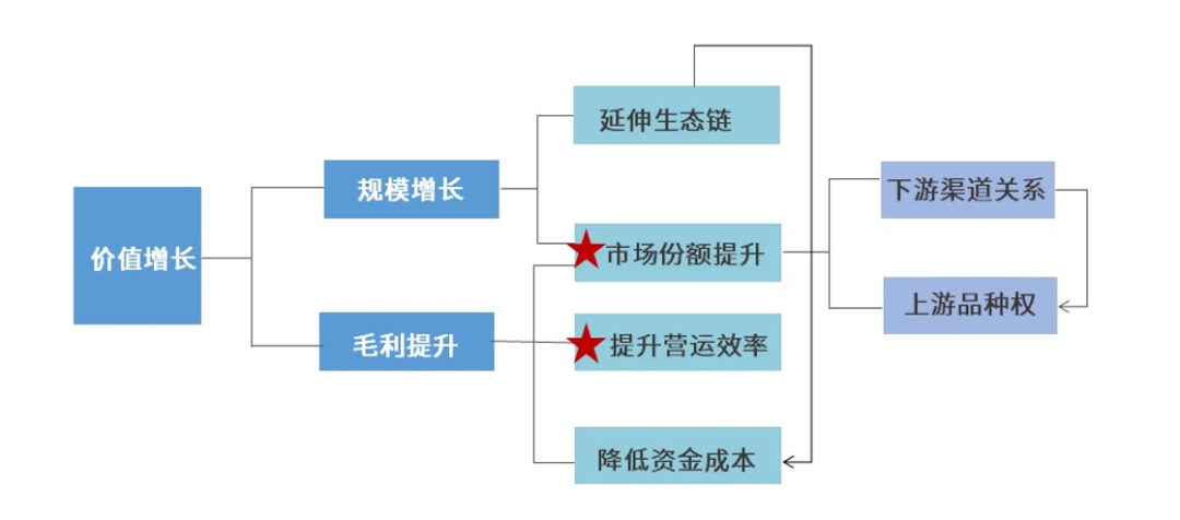 医药流通行业的价值增长主要靠两大途径:规模增长和提升毛利,这两大途径下,又可得出四种方式,即延伸生态链、提升市场份额、提升营运效率、降低资金成本。目前更多的企业会重点放在了提升市场份额和提升营运效率上。