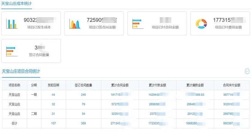 成本合约模块,业务数据呈现