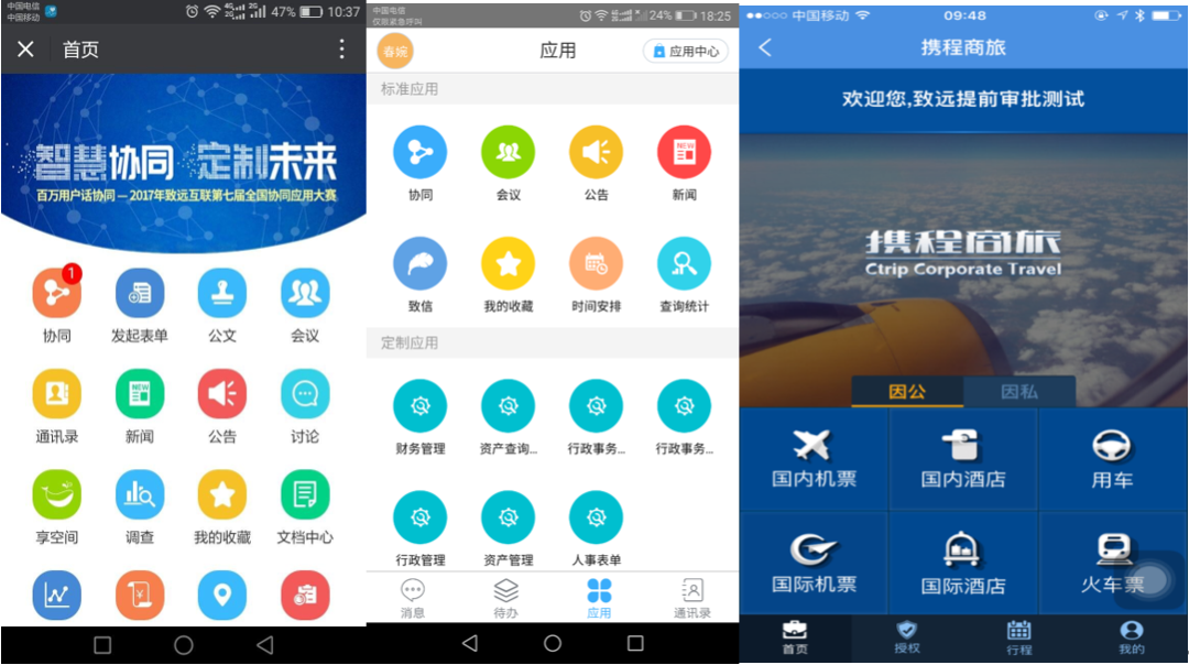 对企业的管理者来说,移动应用的作用可以说是无可替代。因为他们今天在谈业务的路上,明天在去签协议的途中,不可能经常宅在办公室里,也就要求更加灵活的工作方式。致远互联协同运营平台的移动协同门户为道道全的管理者提供了跨越时间和地域的互联网时代工作方式,让管理者随时随地关注企业动态、办理业务。而且,移动协同应用不是PC端的简单延伸,而是从企业用户的实际应用角度出发,研发的具有独立应用场景的移动应用。