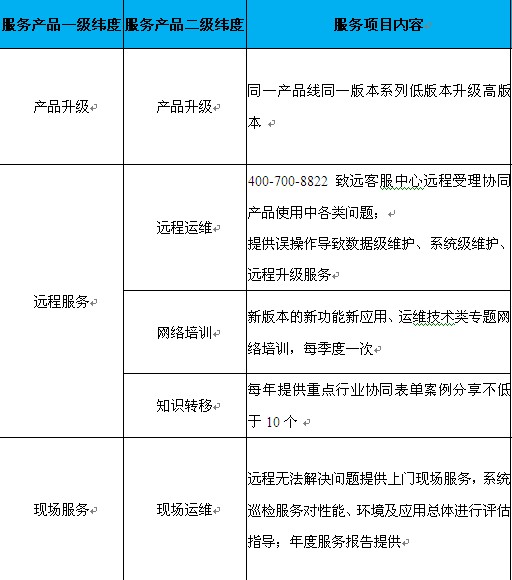 运维服务产品共包含三种:免费服务产品、标准年服务产品及扩展年运维服务产品。