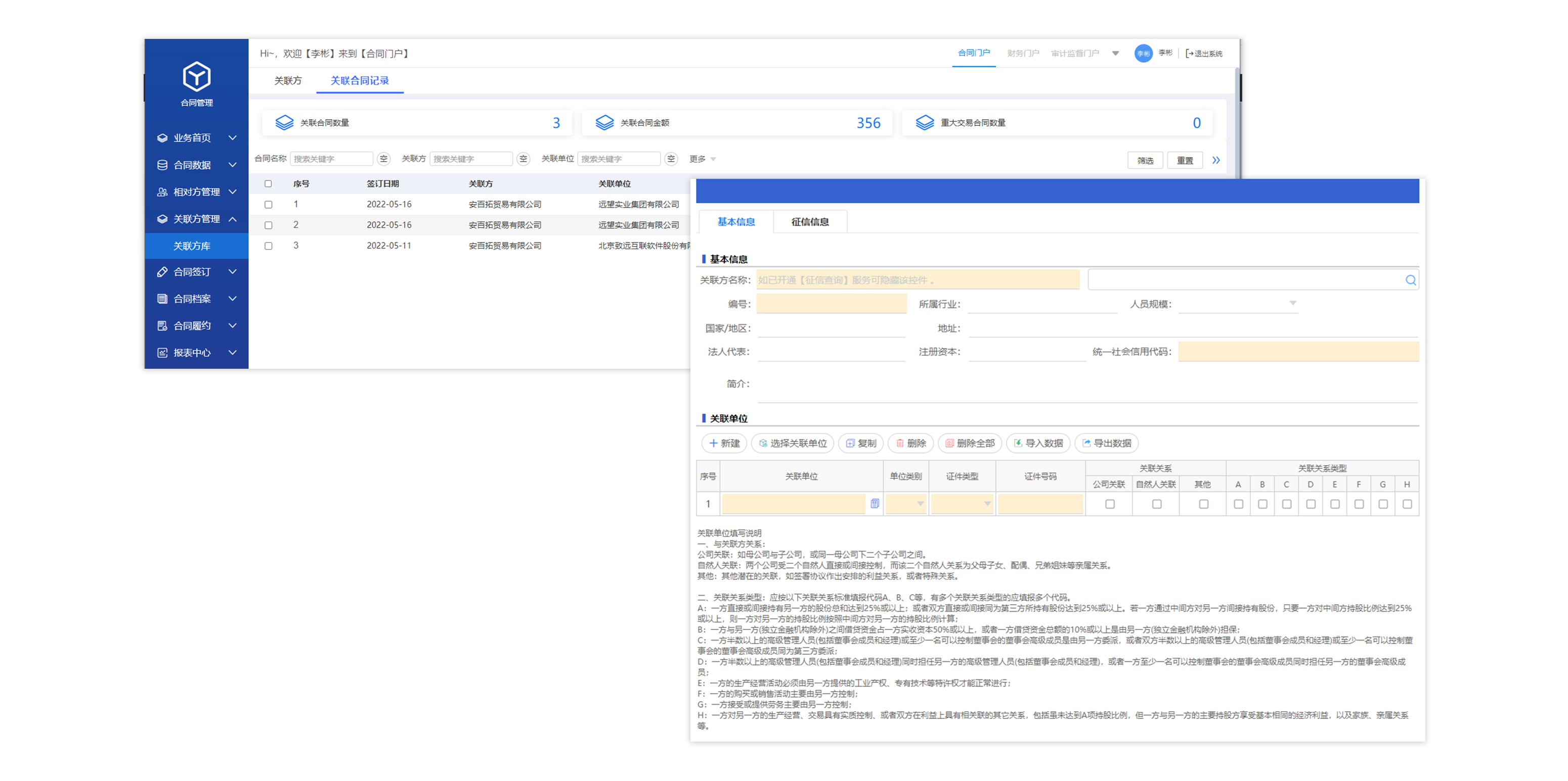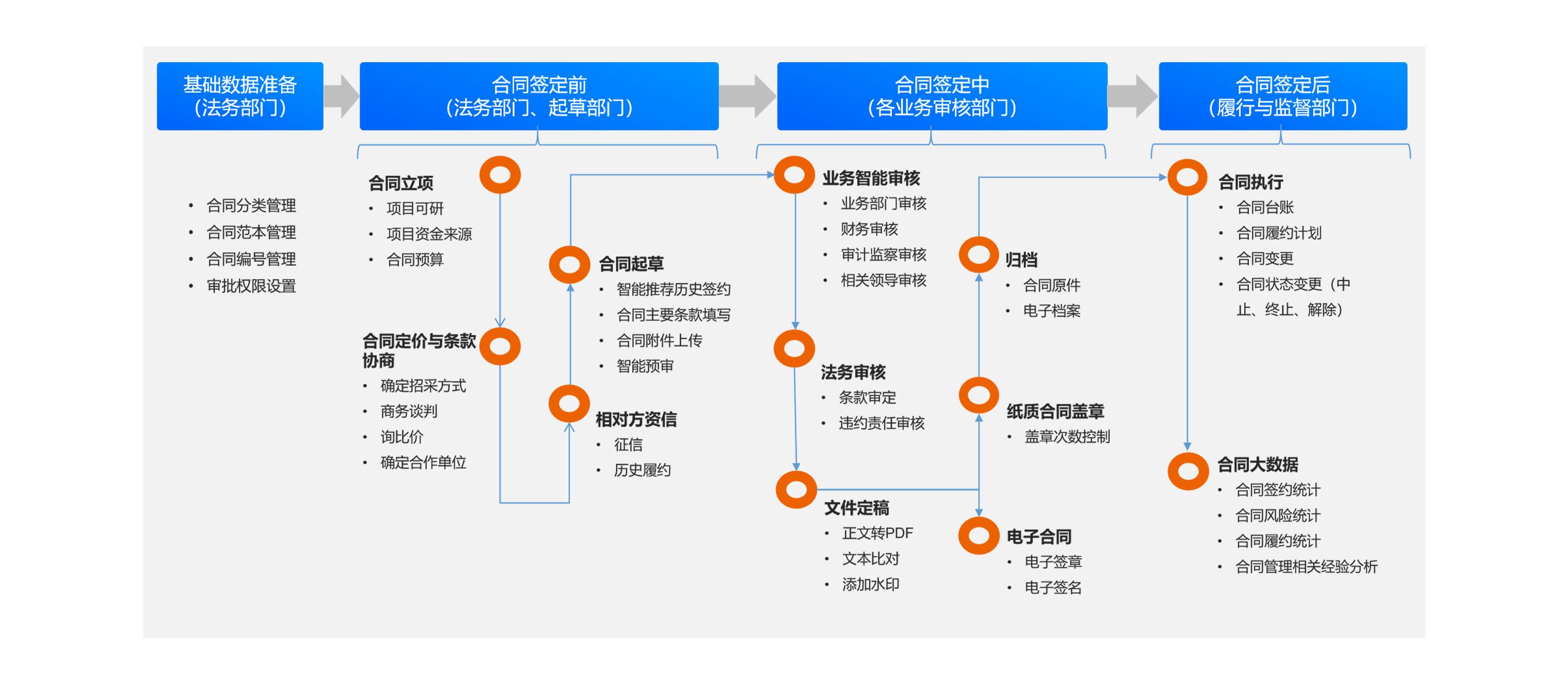 将不同类型合同格式文本和参考范本录入系统,分类管理、统一维护,合同起草时按照范本授权及合同类型规范调用,解决合同起草时模板找不到、用不对、不规范等问题。